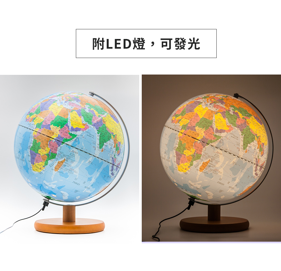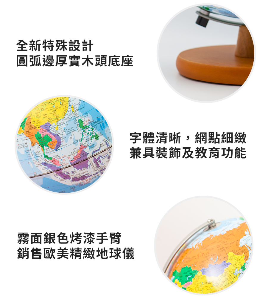 材質:地球儀-耐衝擊聚苯乙烯、底座-木質