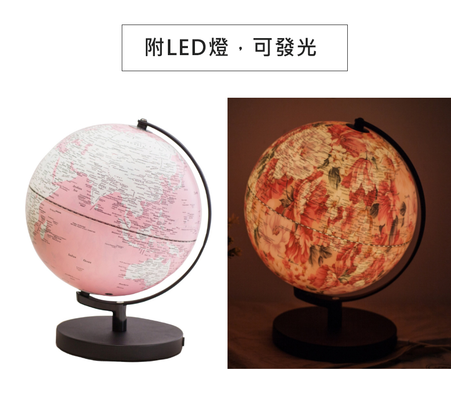 地球儀差別在於球體大小、立體印刷、有無發光功能等,球體越大字體也會越清晰,更適合教學使用。
