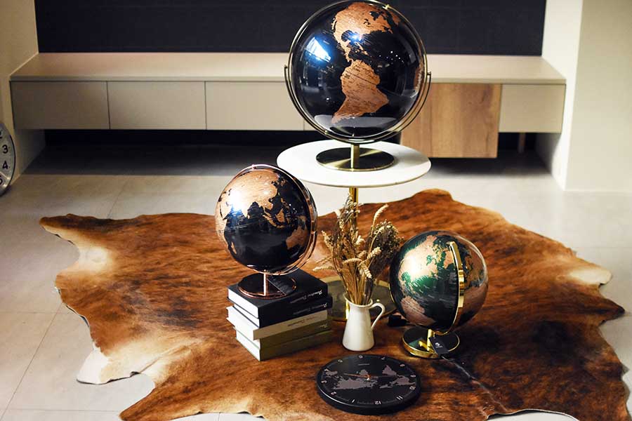 以最專業的技術製造出一顆顆的地球儀,由台灣團隊設計製造,每年皆採用最新的世界地圖來生產製造,並開發出眾多功能與款式。從教學適合的衛星地圖款到獨具風格的復古地圖款,6種尺寸、近百顆設計款地球儀可供選擇。